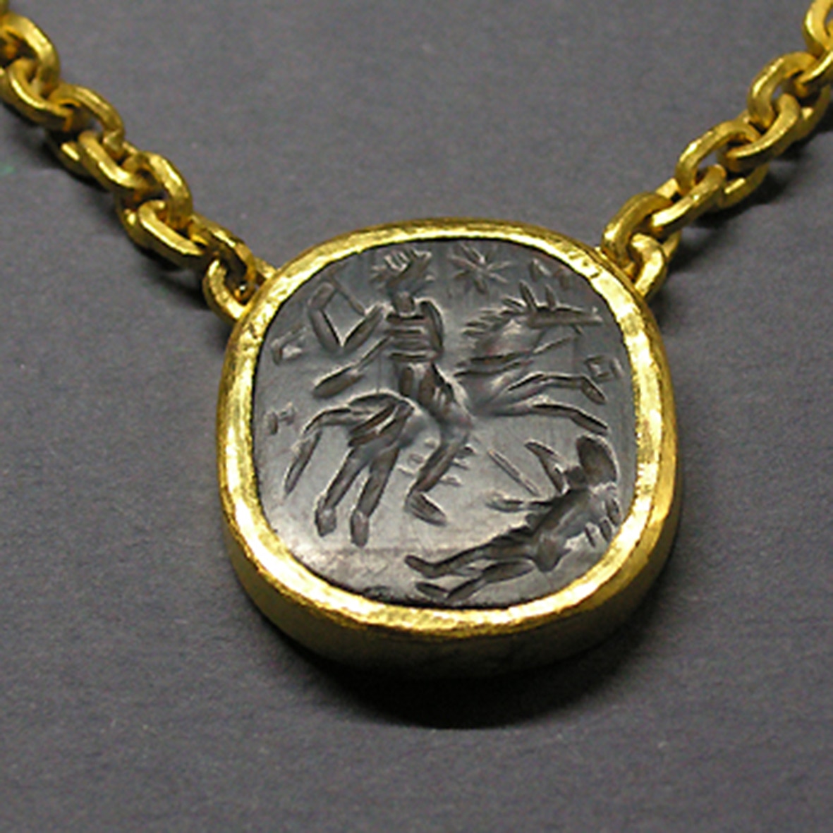 Unter Verwendung von antiken Steinen oder erlesenen Farbsteinen entstehen einzigartige Werke, die ausnahmslos handgefertigt sind.