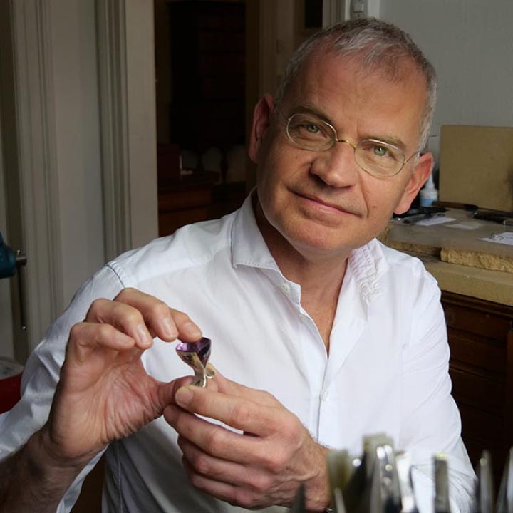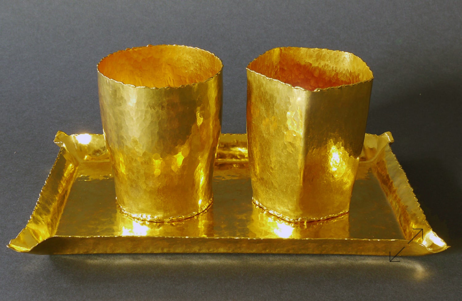 Für seine eigenen Kreationen benützt er ausschliesslich reinste Edelmetalle: 24-karätiges Gold, Silber 999 und Platin.
